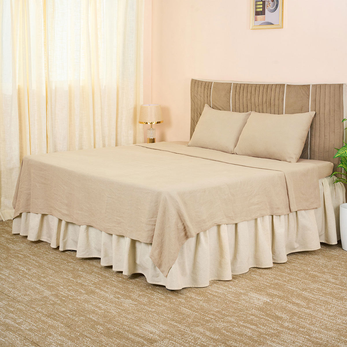Bring home the timeless luxury of European linen Flat sheet set — bedding that feels as indulgent as it looks. Crafted from 100% pure flax grown in Europe, our linen is naturally breathable, temperature-regulating, and designed to last for years. Each piece is pre-washed for a relaxed drape and an inviting softness that only deepens with time, creating the effortlessly lived-in comfort linen is loved for.